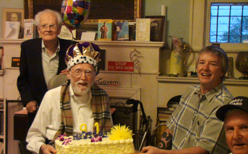 above L-R Bill Maness, Birthday Boy Bob, Jim Webb,